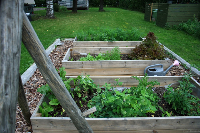 Vähän harmittaa, ettei tullut laitettua sipulia kasvamaan. Ensi vuonna sitten. Myös bataattia tekisi mieli kokeilla.